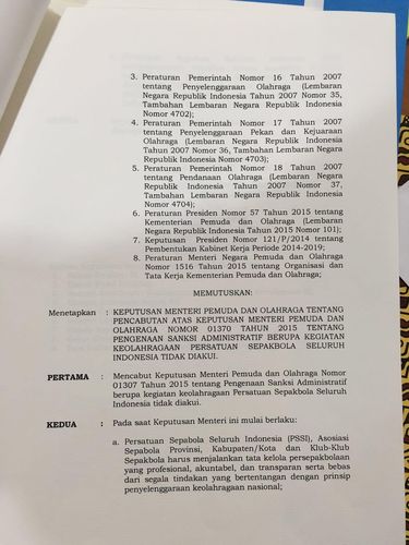 Menteri Pemuda dan Olahraga (Menpora) Imam Nahrawi telah menandatangani SK pencabutan pembekuan PSSI. Ia menegaskan ada dua alasan kenapa pembekuan PSSI tersebut akhirnya dicabut.